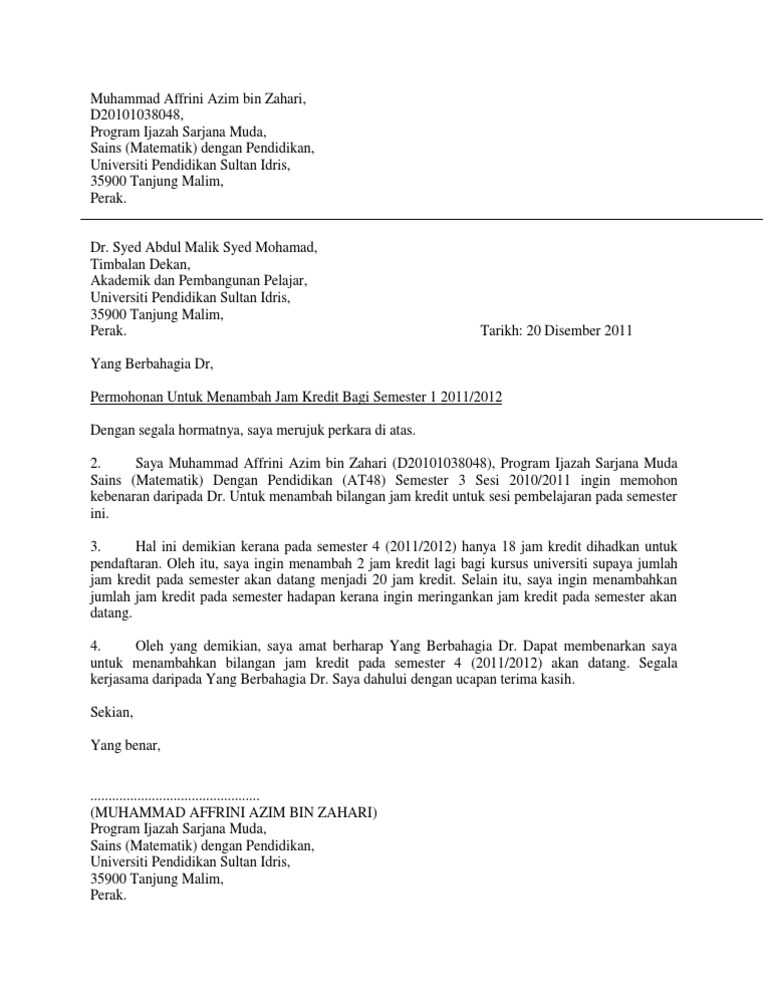 Doc Dokumen Tips Contoh Surat Tambah Jam Kredit Izzat Yahya Academia Edu